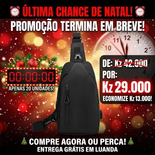 🎄🎁Oferta Natal Limiteda 🎅 Presente de Natal mais prático em Luanda!🎅 Mochila Antirroubo com Porta USB Lateral 🎁⚡– Carregue enquanto anda pela cidade!