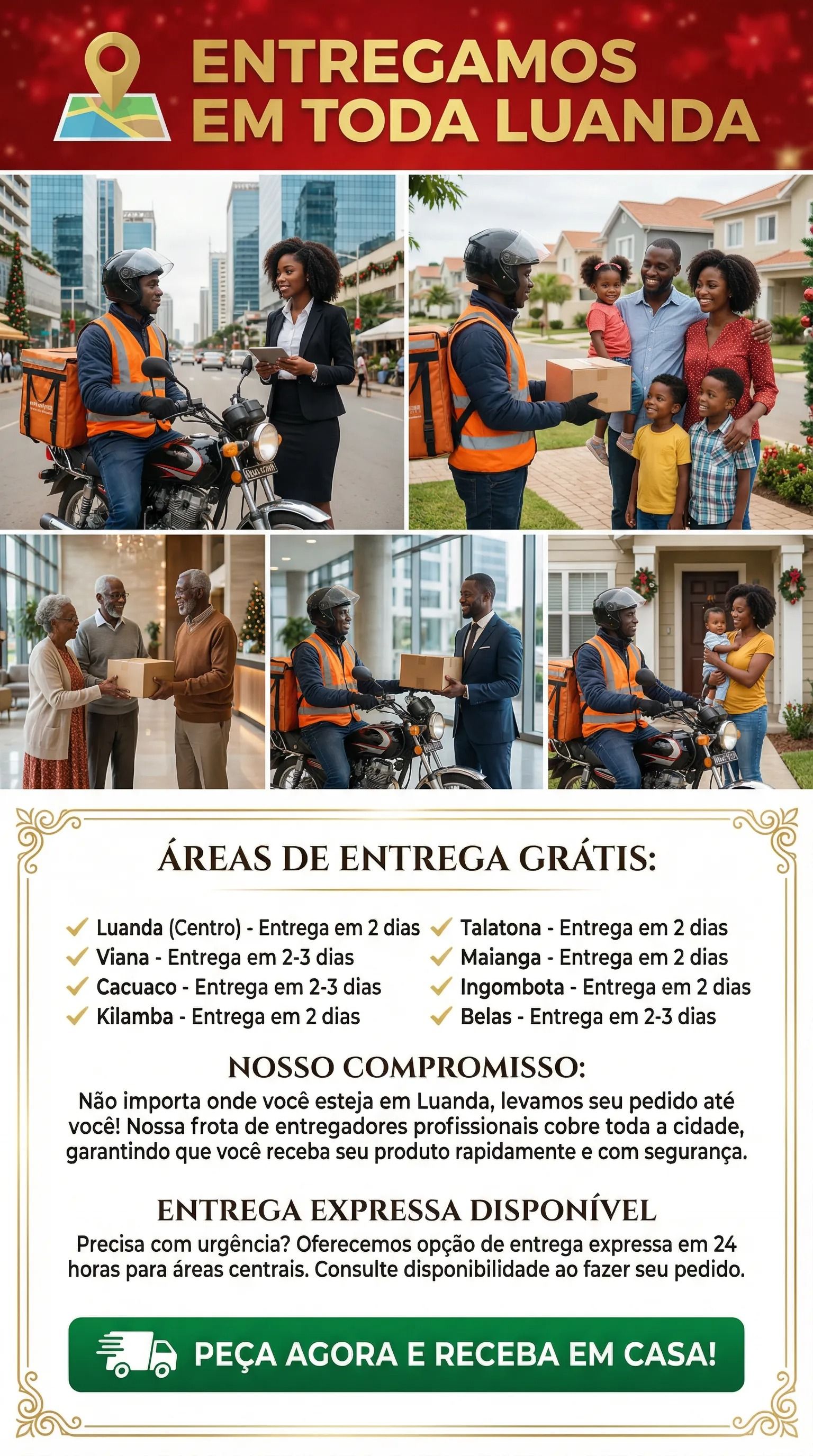 Entrega gratuita em domicílio em Luanda 🚚, pagamento na entrega 💳.