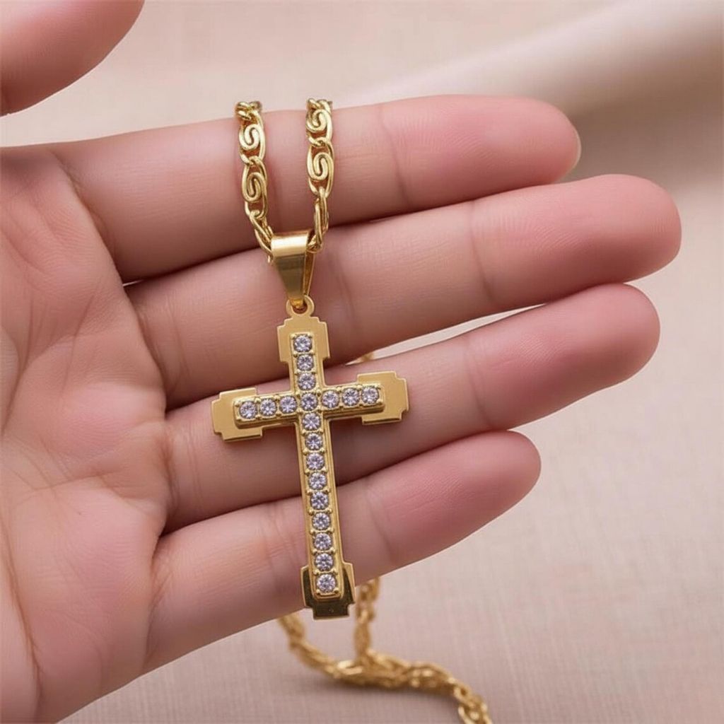 Novo modelo de colar de cruz de aço inoxidável ✨