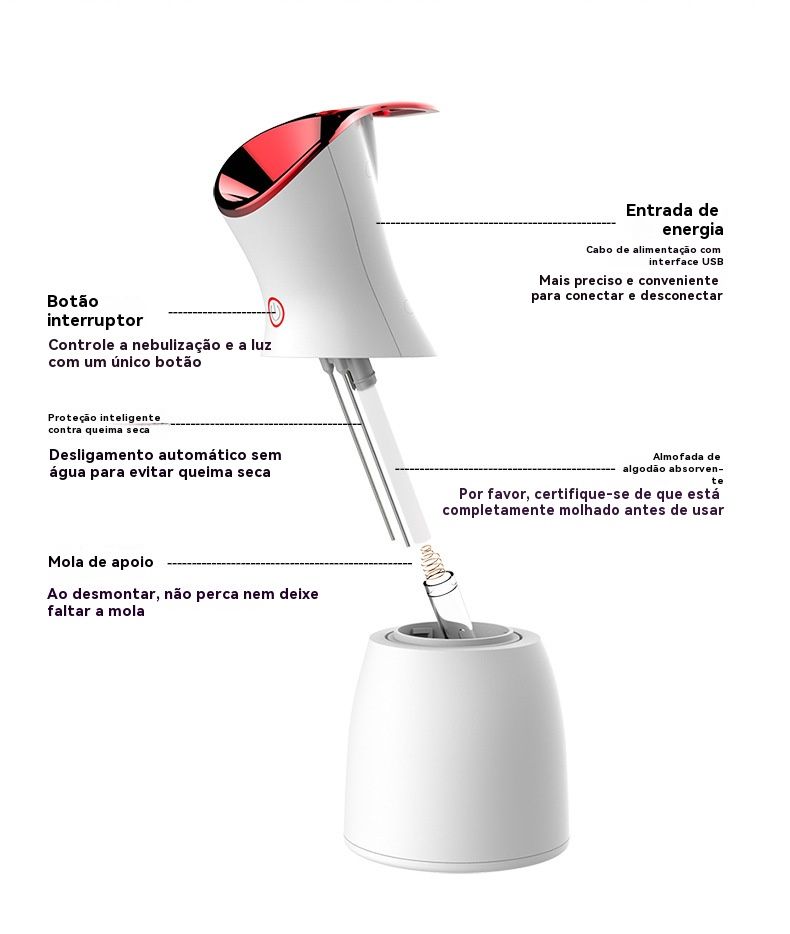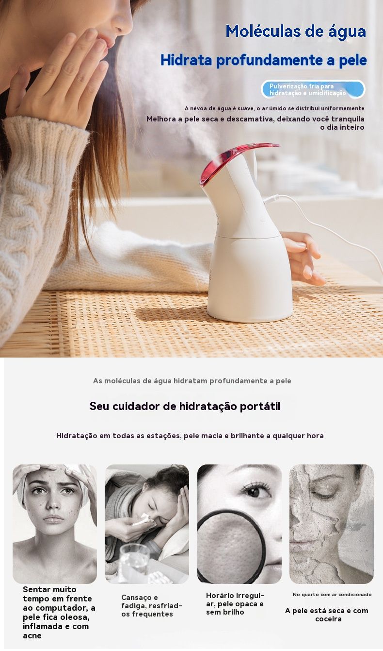 Aparelho de Hidratação Facial Cosmético - Vapor Quente de Nanoágua para Cuidados com a Pele