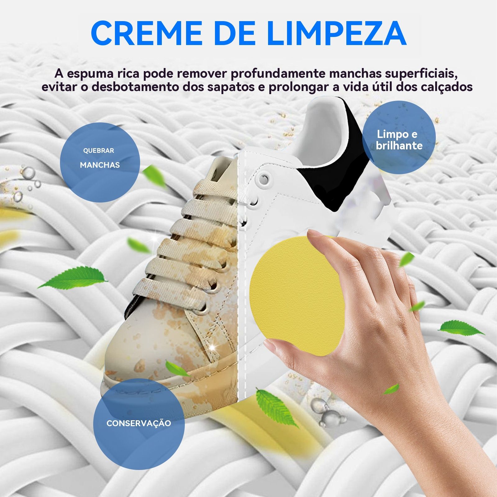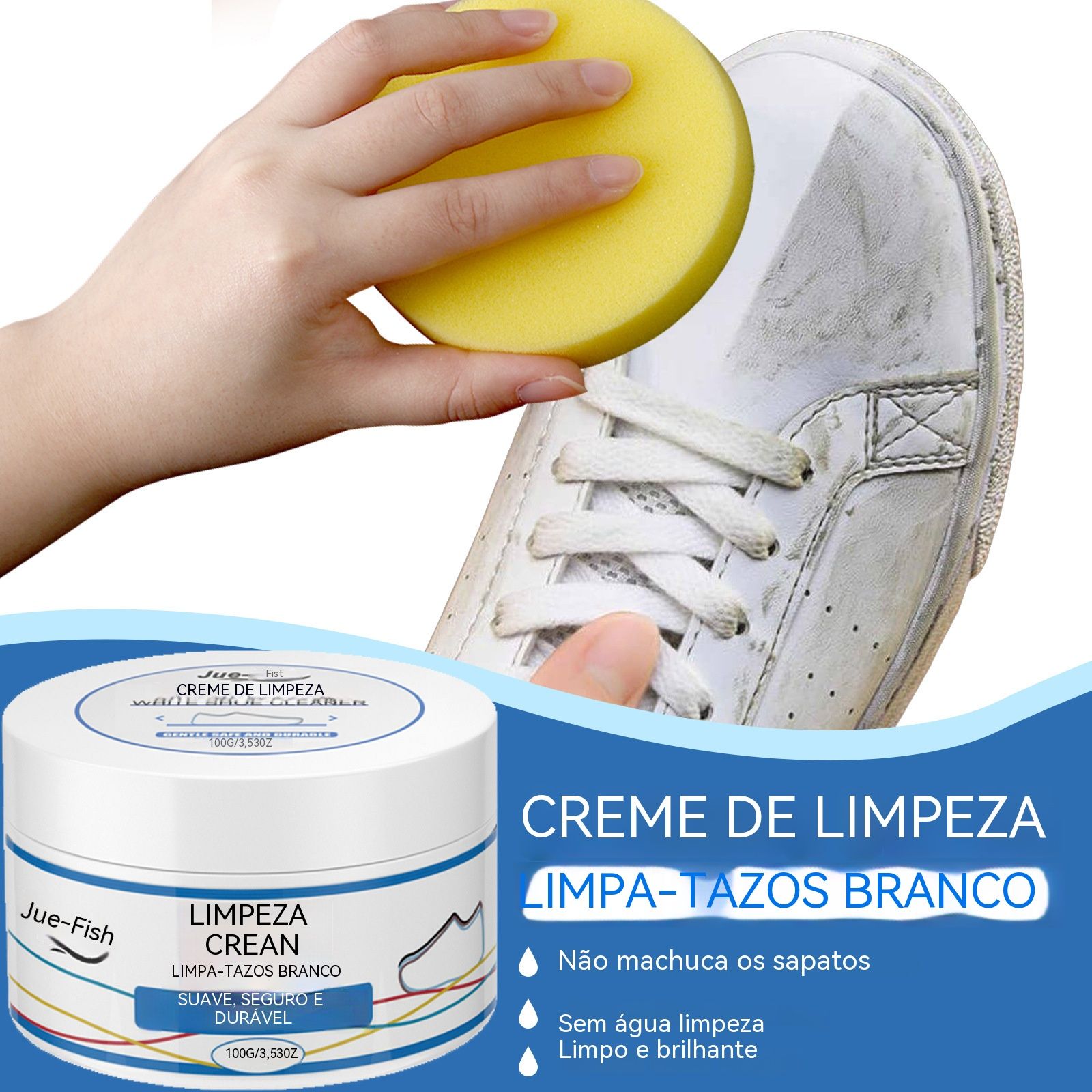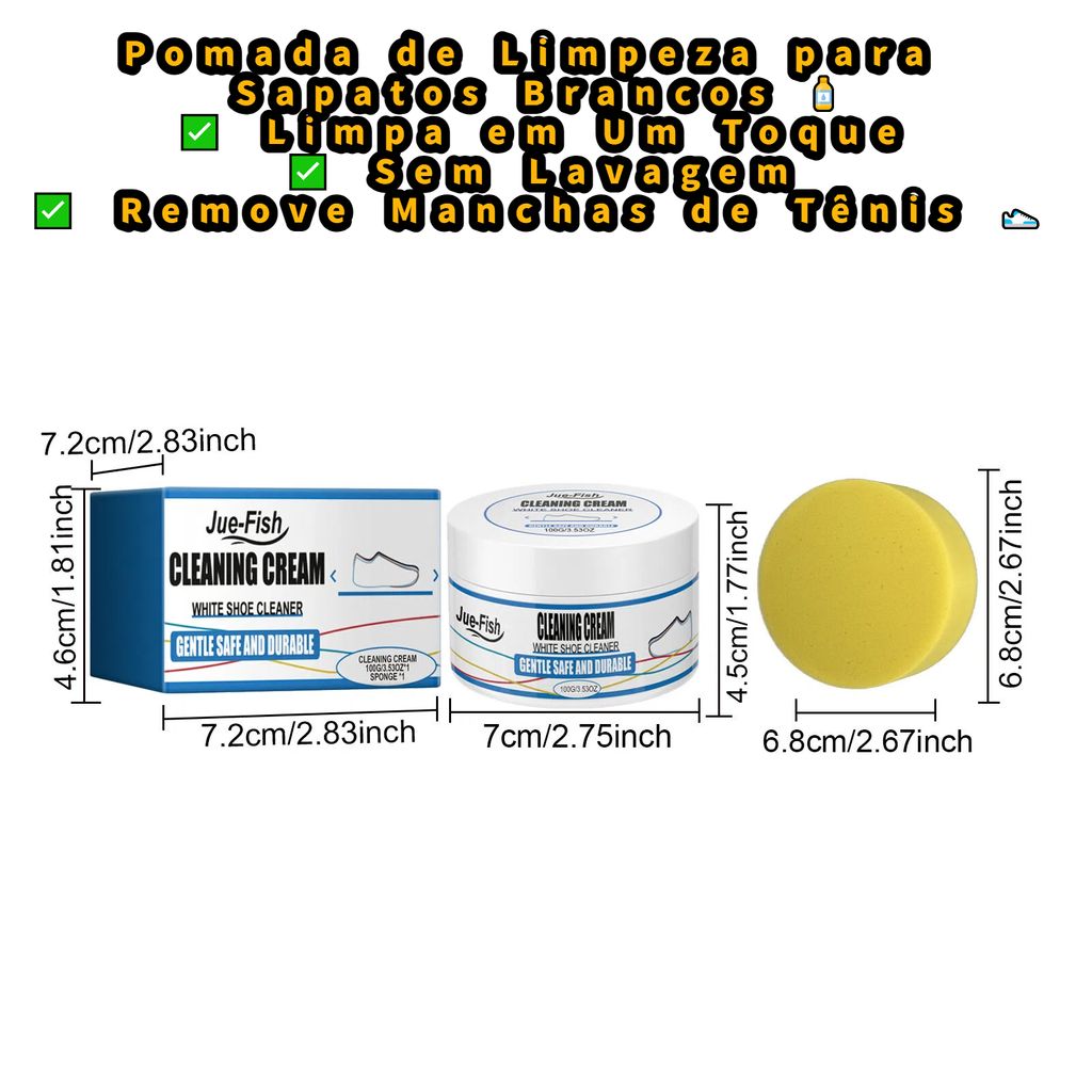 Pomada de Limpeza para Sapatos Brancos - Limpa em Um Toque, Branco Imediato , Rápida e Sem Lavagem, Remove Manchas de Tênis