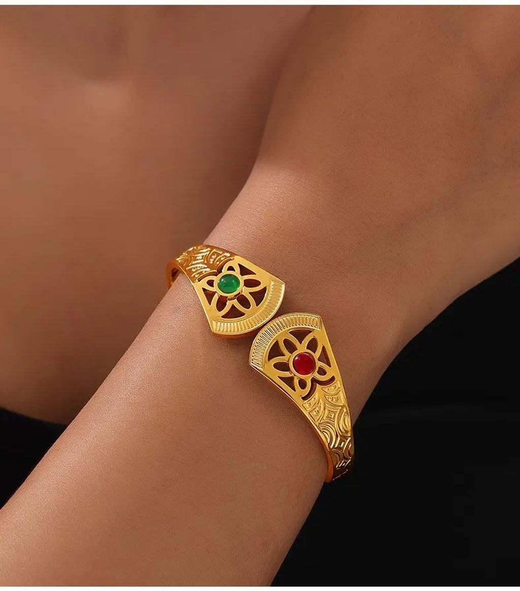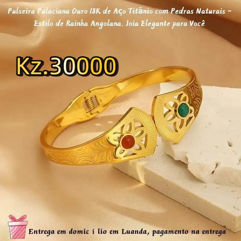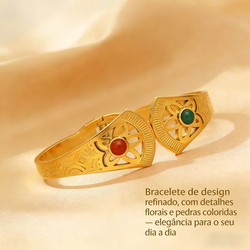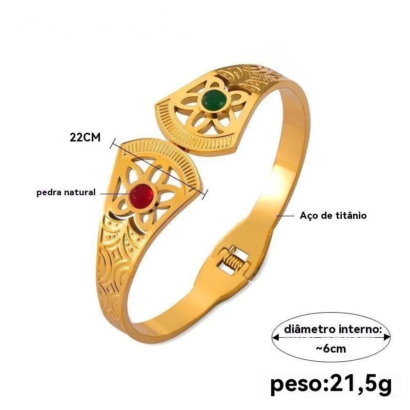 Pulseira Palaciana Ouro 18K de Aço Titânio com Pedras Naturais - Estilo de Rainha Angolana, Joia Elegante para Você
