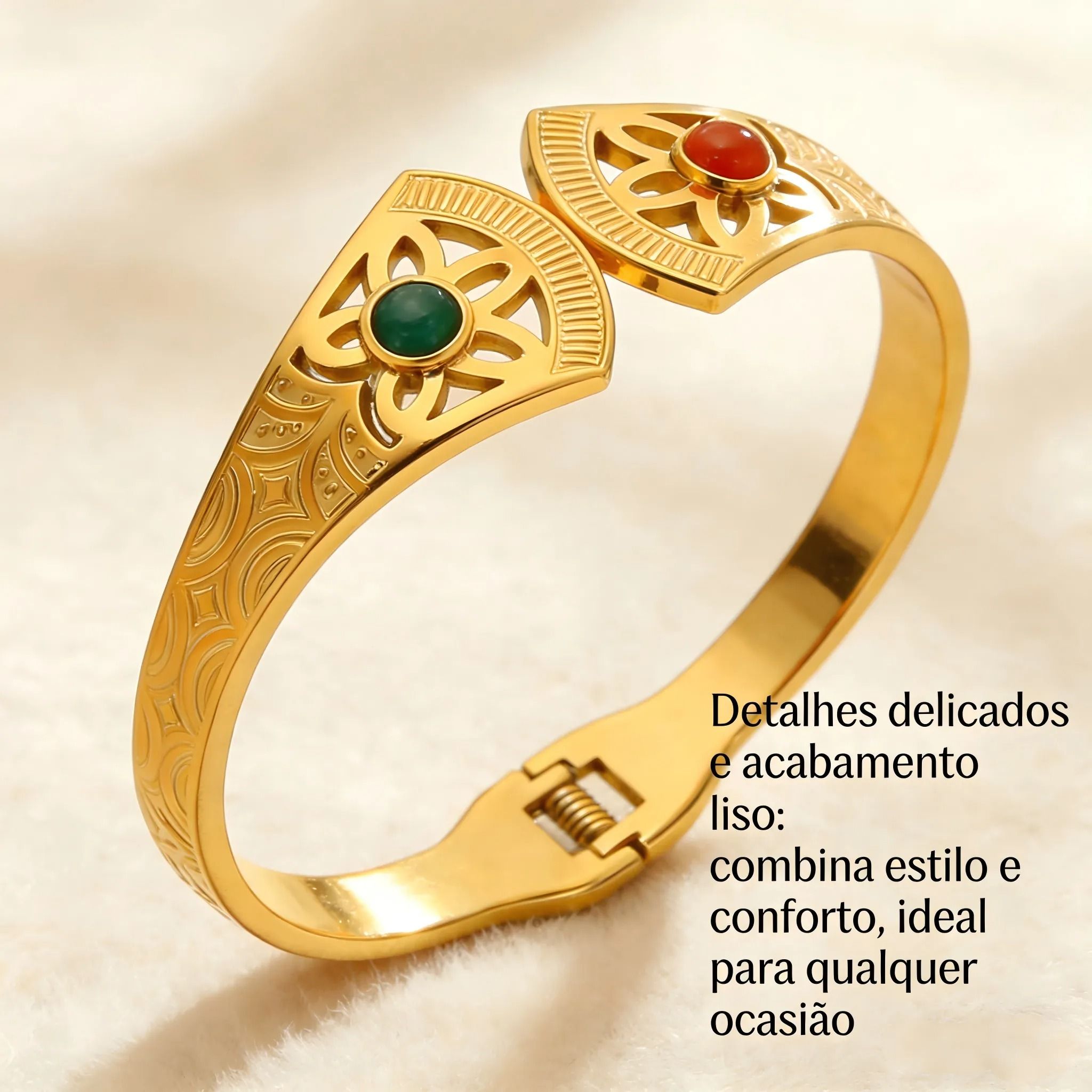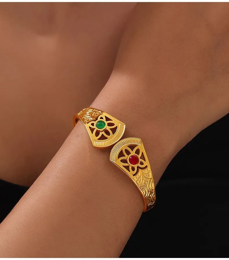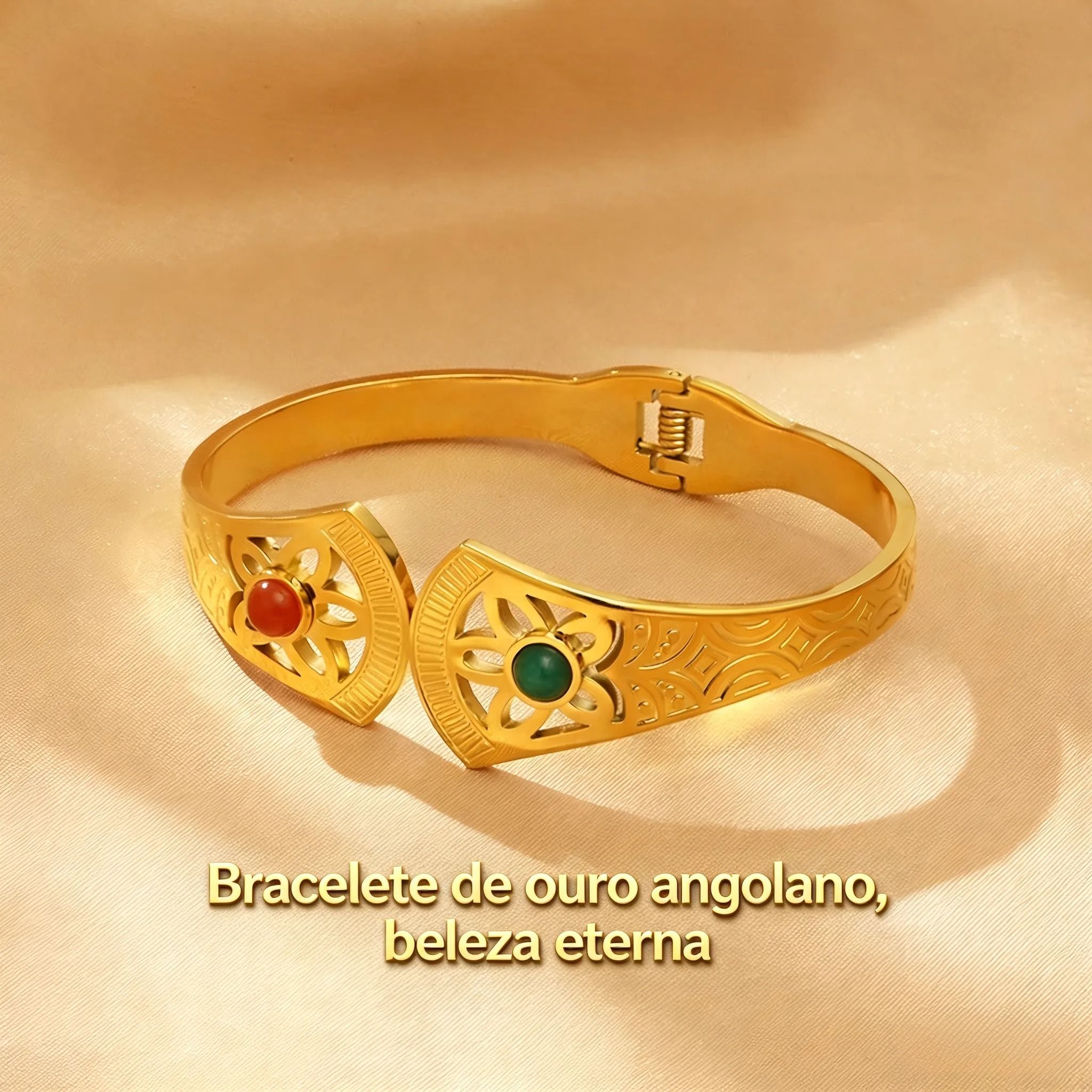 Pulseira Palaciana Ouro 18K de Aço Titânio com Pedras Naturais - Estilo de Rainha Angolana, Joia Elegante para Você