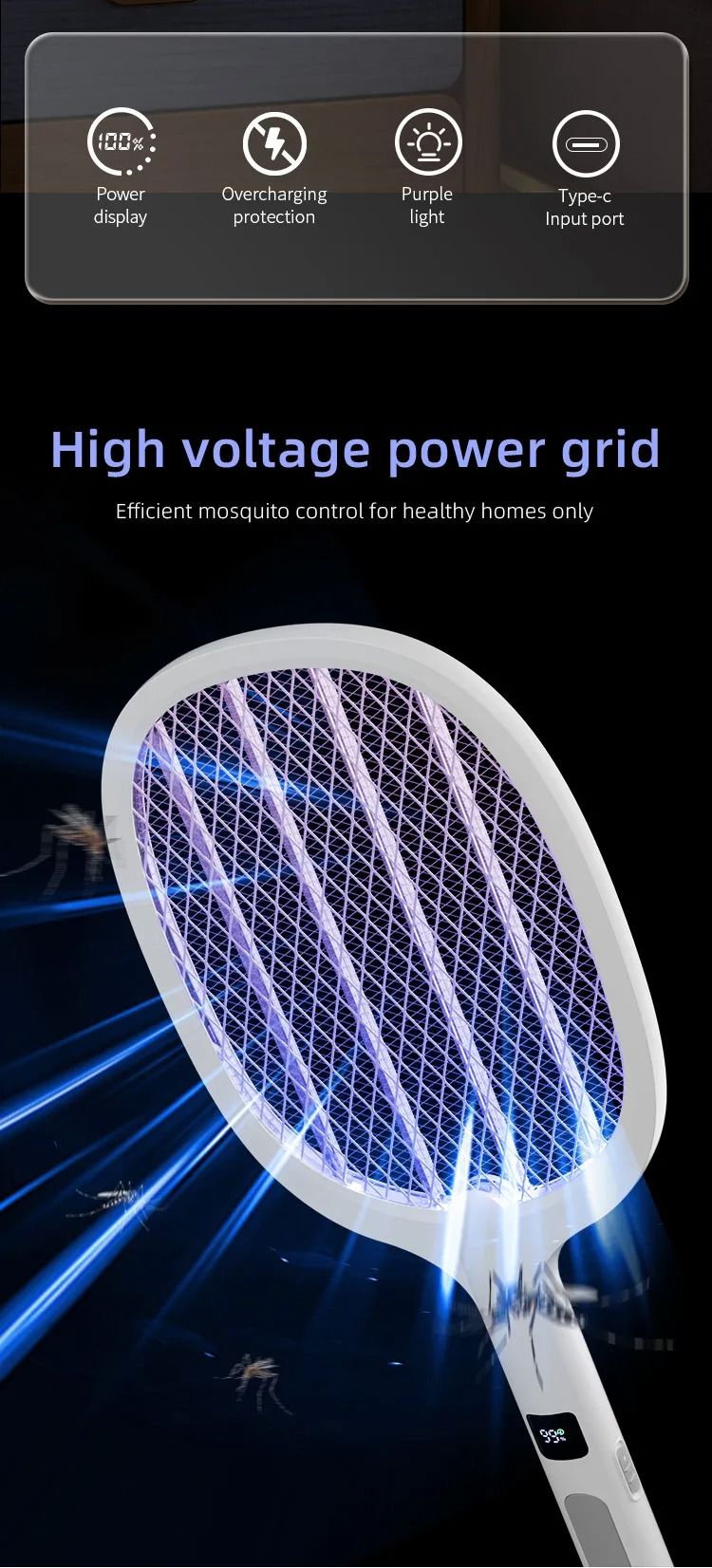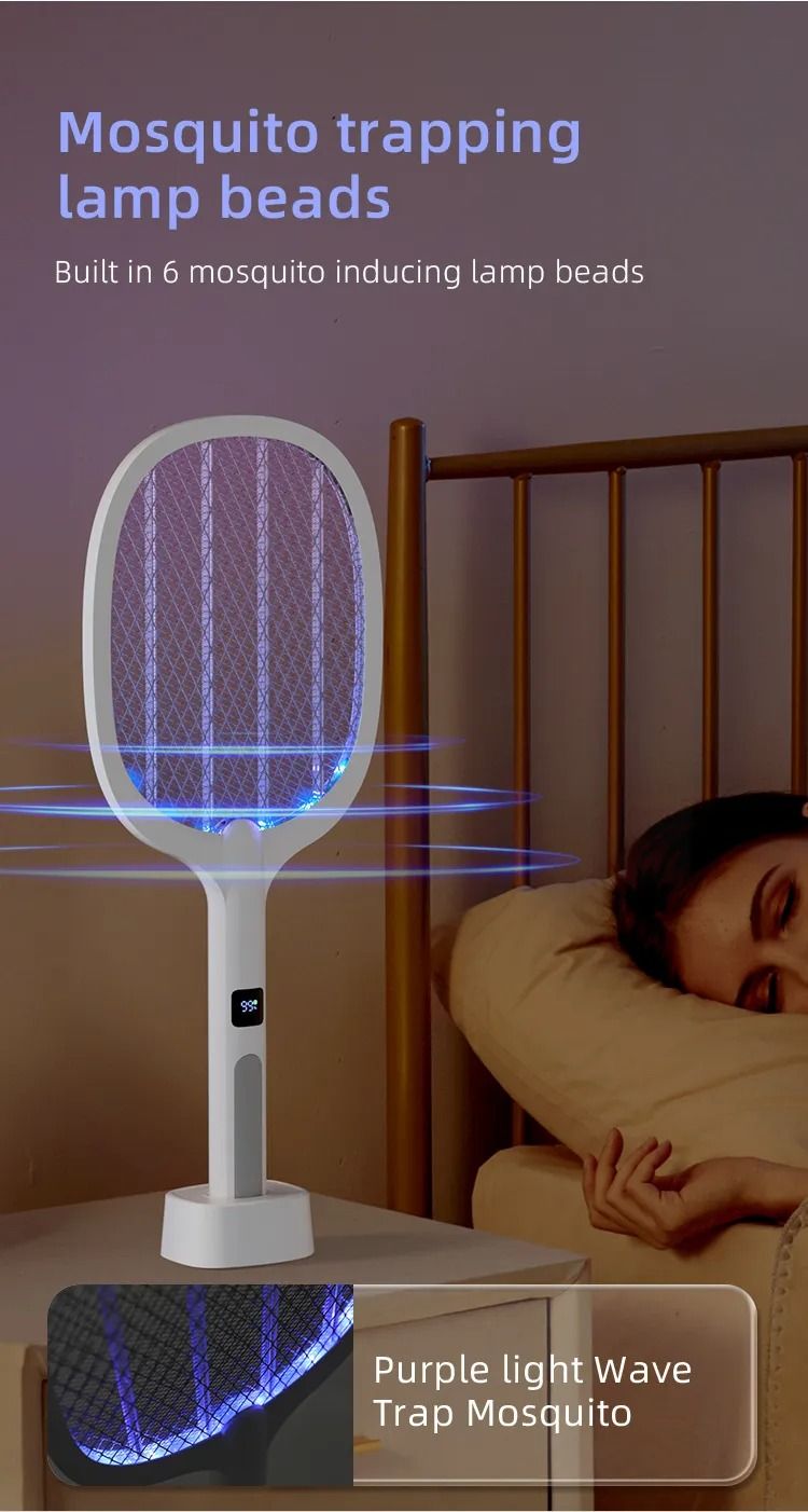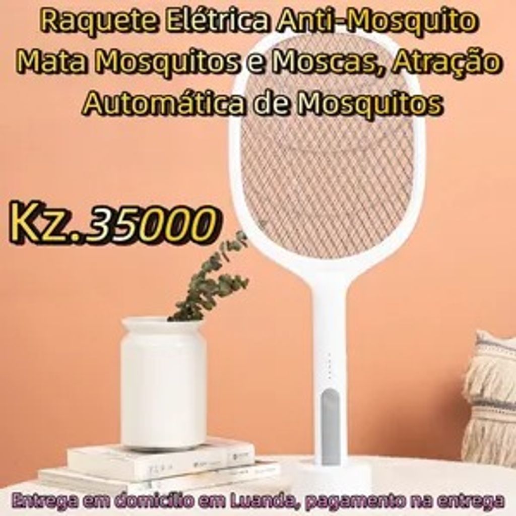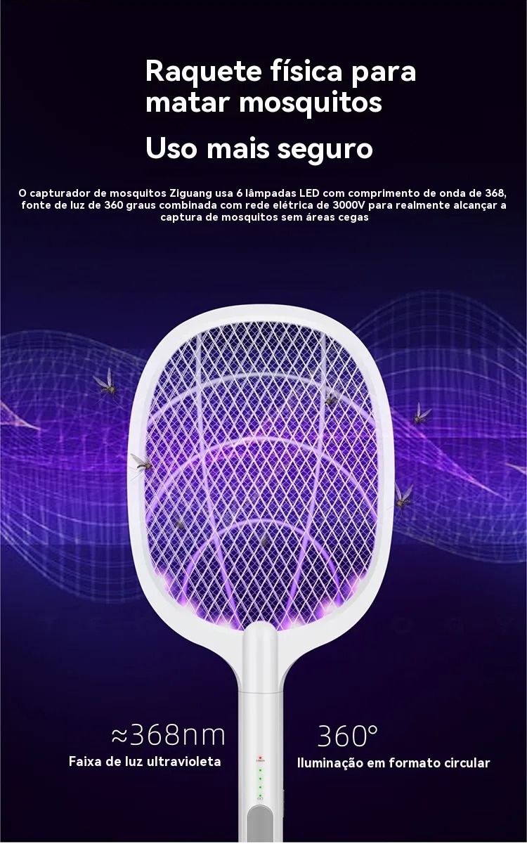 Raquete Elétrica Anti-Mosquito - Mata Mosquitos e Moscas, Atração Automática de Mosquitos