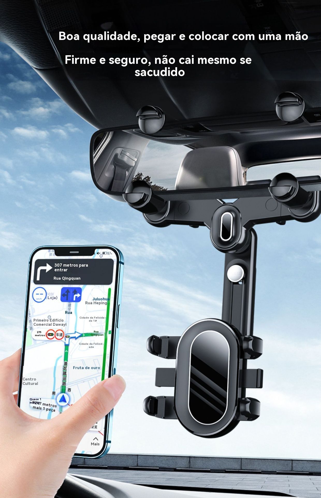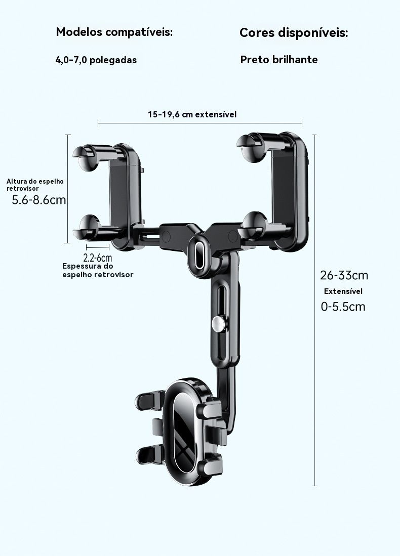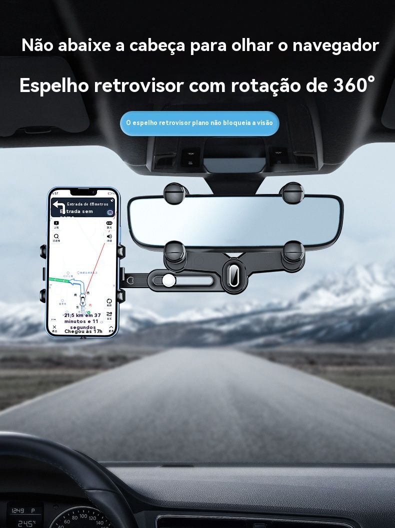 Suporte de Celular para Retrovisor Central de Carro - Ideal para Transmissão ao Vivo e Navegação
